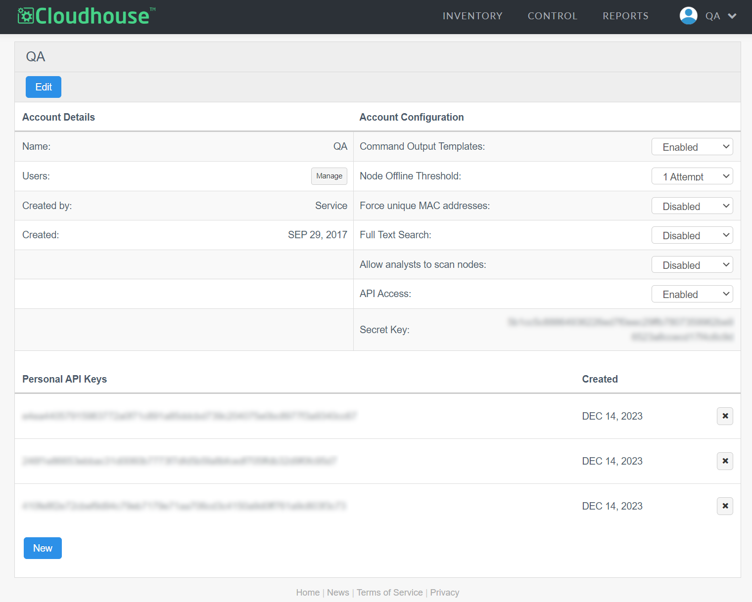 Note: By default, personal API keys are not enabled. For assistance with enabling them in your Guardian instance, contact helpdesk@cloudhouse.com.