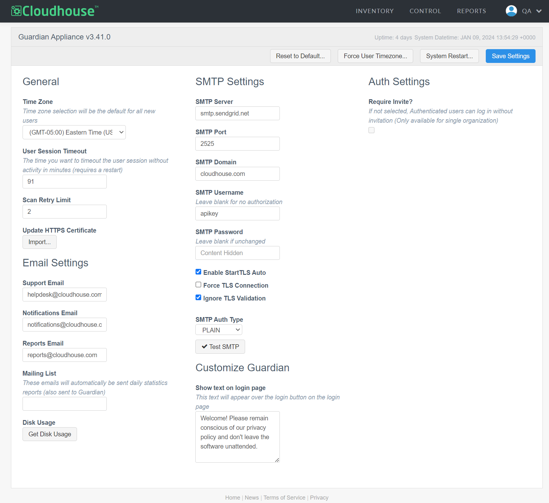 Tip: Only Guardian administrators can access the Settings page. If you don't have access to this page and believe you should, contact helpdesk@cloudhouse.com.