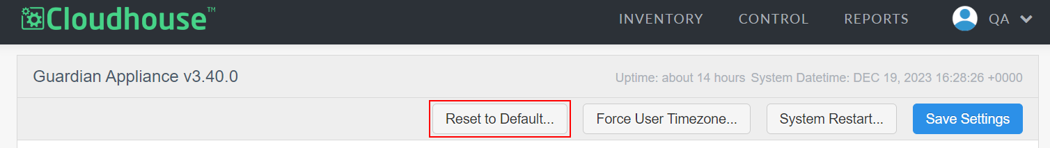 Warning: Resetting Guardian will restore your Guardian instance to its default settings. Any settings configured on this page will be reverted.