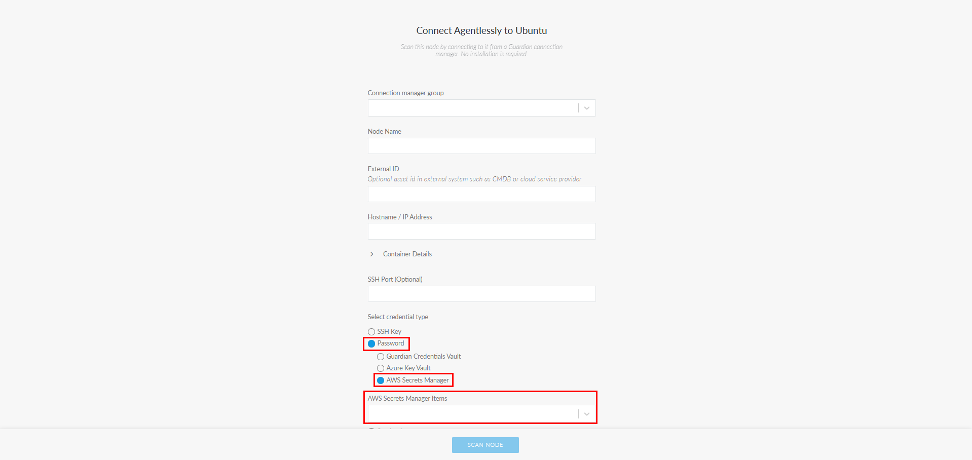 By selecting a credential, you can securely authenticate Guardian's access to the node without manually entering credentials.