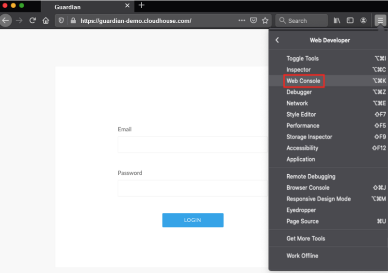 Sometimes a Cloudhouse Guardian (Guardian) Engineer may ask you to view your browser's Web Console to help debug an error message. The following article chronicles how to access your browser console for a range of common Web Browsers.