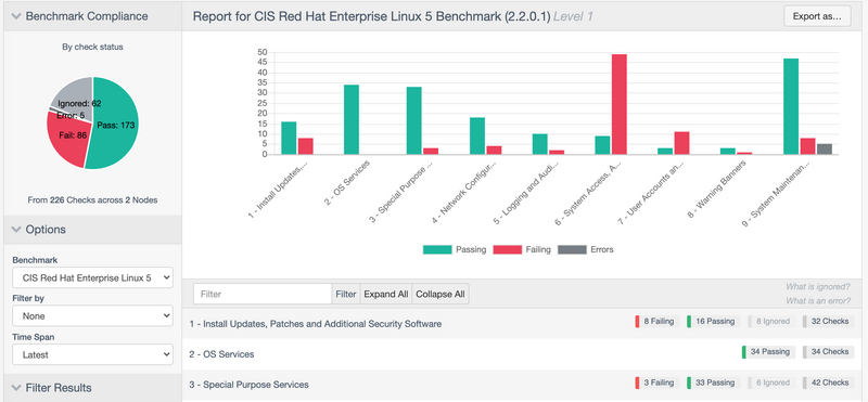 • Choose a single benchmark that can be applied to a small group of your nodes to begin with. For example, you could choose to try parts of the CIS Red Hat 7 benchmark on all of your RHEL 7 nodes.
